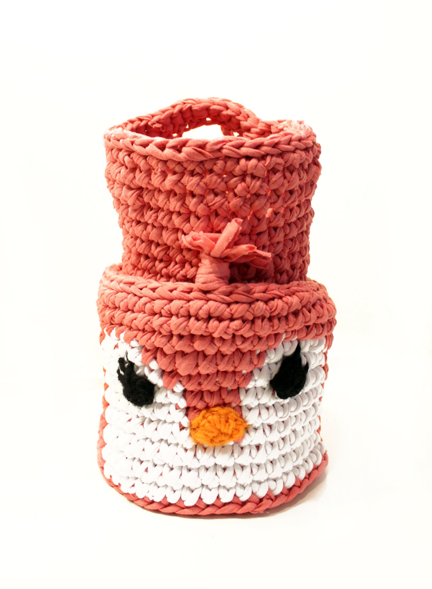 Rozmery košíku sú 16x14cm. Košík môžete kombinovať s menším košíkom s uškom rovnakej farby. Háčkovaný košík Vtáčik 6€, košíky s uškom vhodný na zavesenie. Veľkosť 12x11cm. cena 3,60€